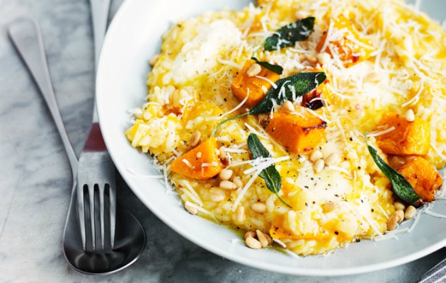 - Doğradığınız bal kabaklarını zeytinyağı, tuz, karabiber ve tarçınla harmanladıktan sonra ısıttığınız fırında 25 dakika pişirin. Diğer tarafta soğanlarınızı karamelize olana dek pişirin ve son olarak içine ezilmiş sarımsakları ekleyerek 1 dakika daha çevirin.