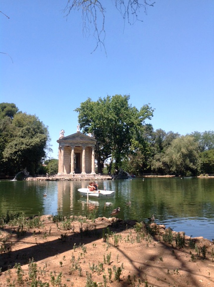 İspanyol merdivenlerinde yürüyüp, özçekimlerimizi de yaptıysak müthiş bir yere yol alıyoruz şimdi: Villa Borghese (Borghese Bahçeleri). 1700 dönümlük arazisiyle Roma’nın tam kalbinde yer alan bu kocaman park -hatta haritada bana kalbi hatırlatıyor şekil olarak- açıkhava müzesi, doğası, yeşili ve heybeti ile tam bir cennet. Burada tam bir gün geçer aslında. Bisiklet kiralanabilir, su kenarında kano keyfi yapılabilir… Yine bir zaman kısıtı sorunsalı burada baş gösteriyor maalesef. Bu cennet bahçesi icin de Roma’ya yine geleceğimi belirtirim. Bu parkta cırcır böceklerinin peşinde 2-3 saat geçirdik. Roma yaz sıcağında kavrulurken bu park bize ilaç oldu.
