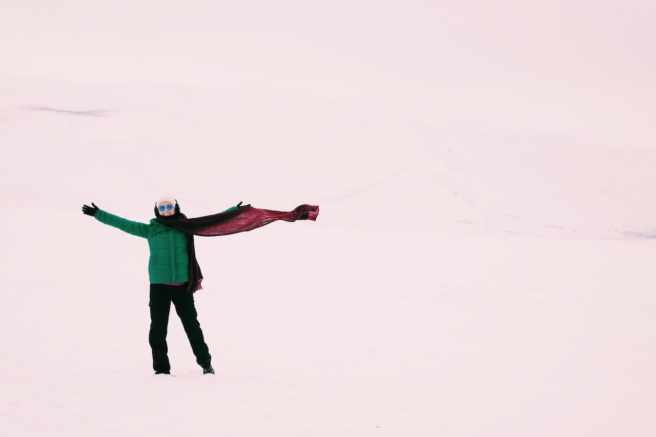 Gölün yüzeyi donmuş ve karla kaplı. Yani bilen biri bize “Göl burası” demese, anlaşılmıyor bile. Heryer bembeyaz, rüyada gibi hissediyor insan kendini. Biraz heyecanla, biraz da tedirgin gölün üzerinde yürümeye başlıyoruz.