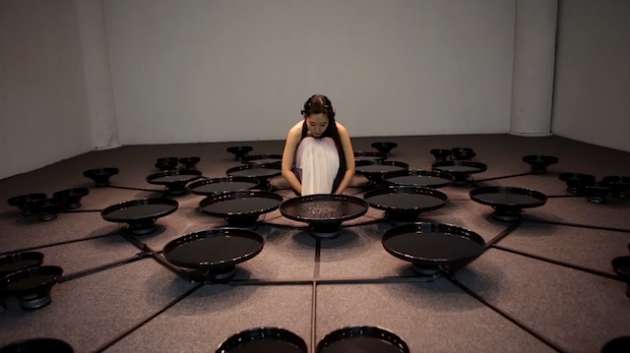 Üzerine su kapları yerleştirilmiş hoparlörler sayesinde müziğe dönüşen beyin dalgaları, aynı zamanda suyun hareketine de hükmediyor. Hem görsel, hem işitsel bir deneyim sunan bu performans, izleyicilerini duygu ve düşüncelerin derinliğine çekiyor.