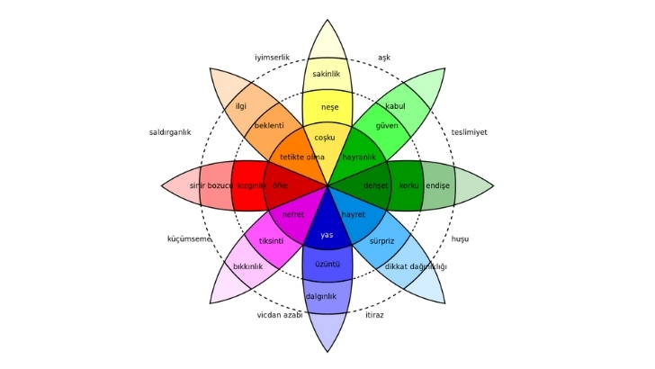 İfade etmek hiç de söylendiği kadar kolay değil malumunuz… Burada tam imdadımıza yetişen bir araç devreye giriyor. Adı: Duygu çarkı. Kendisi, duygusal durumları ve hissiyatları temsil eden görsel bir araçtır. Genellikle daire şeklinde tasarlanan bu çark, farklı duyguları belirli kategorilere ayırarak insanların duygu durumlarını daha iyi anlamalarına yardımcı olur. Duygu çarkı, bireylerin sadece kendi hissiyatlarını değil başkalarının hissiyatlarını daha etkili bir şekilde anlamalarına olanak tanır.