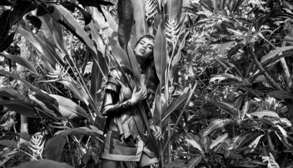 Görsel sanat boyutundan uzaklaşıp, tasarımsal kısma geldiğimizde de, stylist her iki açıdan seçimleriyle şahane çekimi desteklemiş. Peju Famojure, seçimlerini Rodarte’nin 2013 bahar koleksiyonundan yapmış. Doğanın içinden alınmış gibi doku çalışmalarıyla bezenmiş koleksiyon oldukça dikkat çekici.