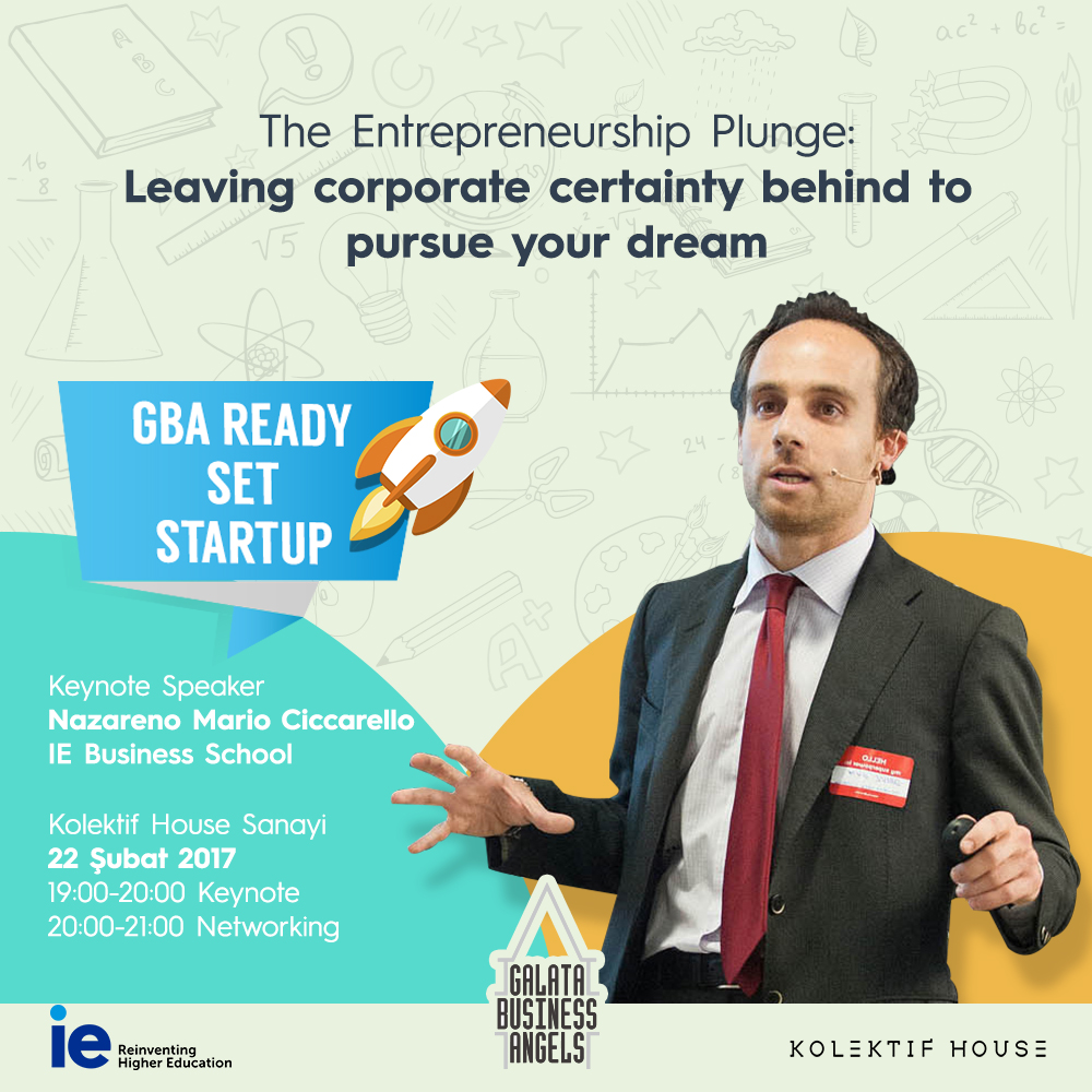 İstanbul’un ilk melek yatırımcı organizasyonu Galata Business Angels, yeni girişimlere onlara rehberlik ederek, iş fikirleri için finansman bulmayı hedefleyen bir yatırım ağı. Finansman bulmanın yanı sıra girişimcileri pazarlama, finans, satış, networking ve strateji gibi alanlarda, ihtiyaç duydukları temel konularda bilgilendirmeyi de amaçlayan Galata Business Angels; 22 Şubat’ta GBA Ready Set Startup eğitim serisine başlıyor. GBA Ready Set Startup eğitim serisinin ilk konuğu IE Business School’da girişimcilik dersleri veren ve aynı zamanda kendisi de başarılı bir girişimci olan Nazareno Mario Ciccarello.