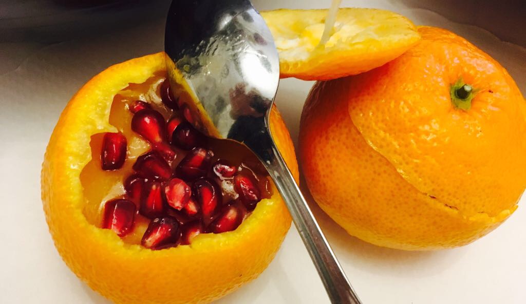 - Bir kaşık yardımı ile mandalinaların içlerini çıkartıyor bir kaba aktarıyoruz.