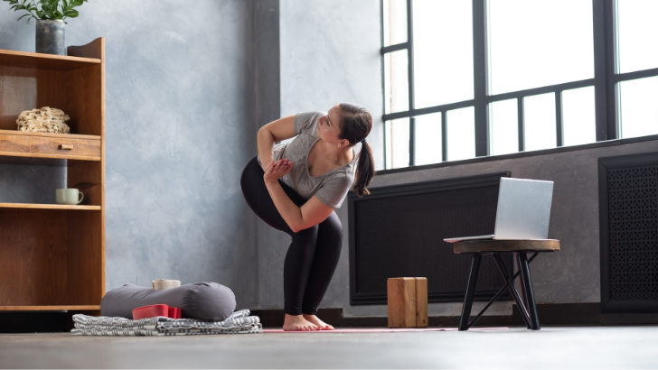 4. Ayaklarınız yerde sağlam ve kalça kemikleriniz aynı hizadayken dengede kalmaya çalışın.