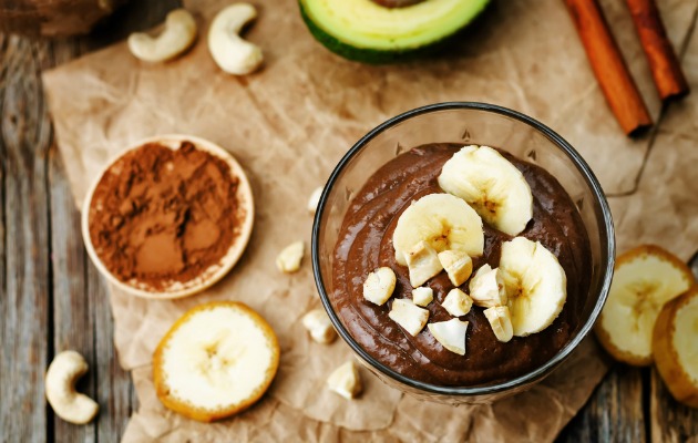 Ezmekte olduğunuz muzun içine, 1 yemek kaşığı doğal kakao ekleyin ve karıştırma işlemine devam edin.