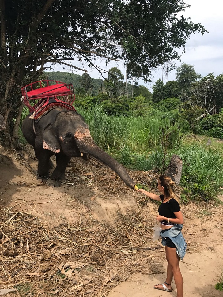 Ben çektirmedim mi evet çektirdim ama tamamen çiftlik ortamında doğal yaşayan fillere birkaç muz verdim, o sırada da hatıra fotoğrafı çekildim ama hiçbir maddi amacı yoktu fil sahiplerinin bu fotoğraflar çekilirken.