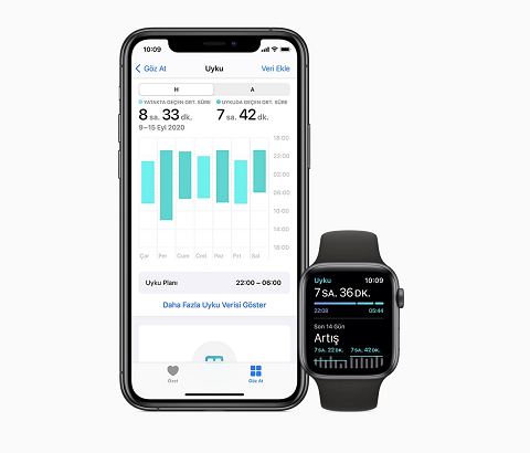 Uyku, sağlıklı bir yaşam için çok kritik bir konu. iOS 14 ile daha da gelişen Sağlık uygulaması, uykunuzu düzene sokmanız için gerekli olan tüm araçları sunuyor. Siz de böylelikle iPhone’unuzda uyku programınızı yönetebiliyor, yatmadan önce yapacaklarınıza ilişkin alışkanlıklar belirleyebiliyor ve uyku hedeflerinize ulaşma konusunda ne kadar istikrarlı olduğunuzu izleyebiliyorsunuz.