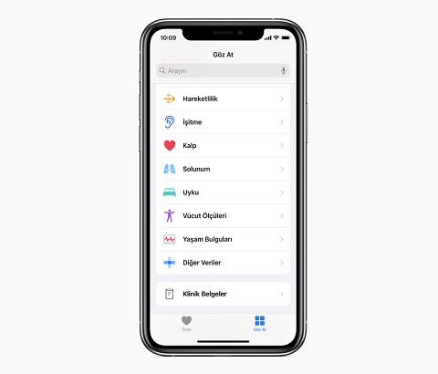 Apple Sağlık uygulaması, oldukça karmaşık bir sistem olan insan vücudunu rahatça takip etmeniz için tasarlandı. Apple Sağlık uygulaması ile birçok farklı türde sağlık verisini saklayabilir ve kolayca düzenleyebilirsiniz. Yeni güncellenen Ara ve Göz At sekmelerini kullanarak kan şekeriniz, kilonuz, kalp atış hızınız, işitme sağlığınız ve menstrüel döngünüz gibi bilgilere de anında ulaşabilirsiniz. Ayrıca şimdi birçok farklı semptomu kaydedip takip ederek onlarla ilgili daha fazla bilgi sahibi olabilirsiniz.