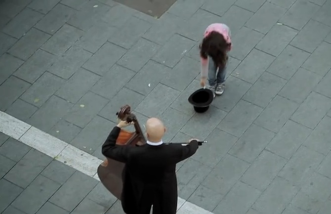 Kalabalık bir meydanın ortasında elinde çellosu, yerde şapkasıyla bir müzisyenin hiç bir şey yapmadan durduğunu hayal edin. Bir çoğumuz bu adamın yanından belki görmeden, belki görüp de görmemiş gibi yaparak geçip gideriz. Ancak küçük bir kız bu adama yaklaşıyor ve elindeki bozuk parayı şapkasına bırakıyor. Sonrasında yaşadığı deneyim ise, belki de hayatı boyunca hiç unutamayacağı bir anı olarak sadece onun değil, o an orada bulunan herkesin aklına kazınıyor.
