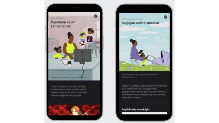 Oyunların kadın kahramanları hikayesi unutulmaz oyunlarda yer alan güçlü kadın savaşçılar, kaşifler kurtarıcılar ve sadık dostları hatırlatıyor ve mobil oyunlarda nasıl kahramanlığın kitabını yazdığını anlatıyor. Ayrıca Dünya Kadınlar Günü’nde kadınlara Sağlığını kontrol altına al hikayesi ile annelikten regl dönemleri ve menopoz kontrolüne, meditasyon ve spor uygulamalarına kadınlara sağlık konusunda çeşitli uygulama önerinde bulunuyor. Klişelere meydan okuyor hikayesi Hungry Shark World oyununun kreatif direktörü Elisabeth Sampat’ın mobil oyun tasarımı deneyimini anlatıyor.