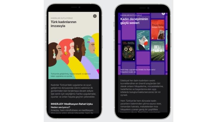 Türkiye’deki uygulama ve oyun geliştirme dünyasında kadınlar sektörün ilk günlerinden beri izlerini bırakmaya devam ediyor. Türk dadınlarının imzasıyla App Store hikayesinde meditasyon uygulamaları Innerjoy ve Mindia, gençlere tasarruf ve yatırım konusunda rehberlik eden Moneye, sinematografik bir oyun olan Recontact İstanbul, farklı pek çok konuda eğitim sağlayan Studio Canlı, sosyal bir spor uygulaması olan SWEATers, popüler kelime bulma oyunu olan Kelimelik ve bulmaca oyunu Color N Roll’un kadın geliştiricileri ile yapılan röportajlar okuyanlara ilham verecek.