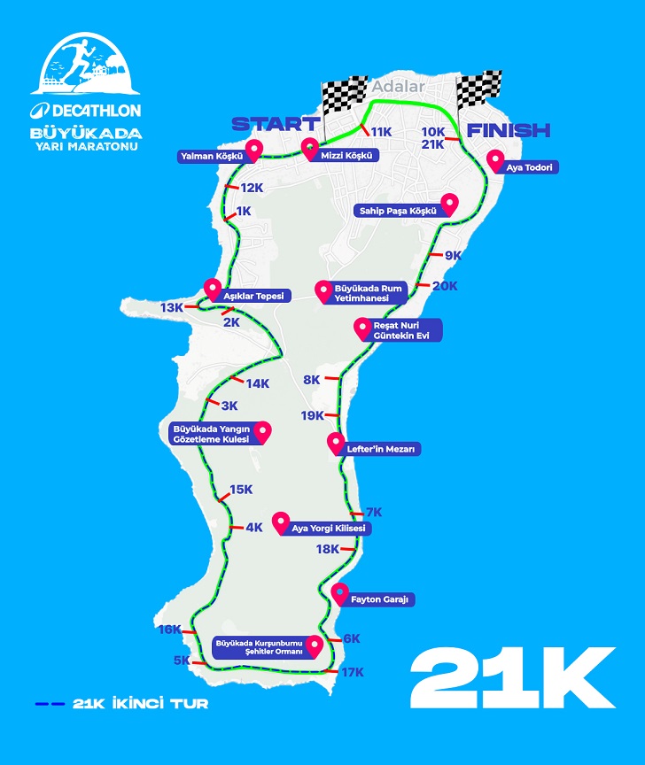 Her ne kadar sonbahar mevsimi gelmiş olsa da bir yandan da yazın son demlerini yaşadığımız şu güzel havalarda yapılacak en keyifli etkinliklerden biri; şüphesiz ki açık havada zaman geçirmek ve mümkün olduğunca hareket etmek. Decathlon Büyükada Yarı Maratonu sayesinde Ada’nın mis gibi havasını içinize çekerken doğanın huzur dolu kollarında kendinize doğru bir yolculuğa çıkabilirsiniz. Üstelik bu yolculukta size eşlik edecek şahane manzaraların yanı sıra Büyükada’nın keşfedilmeyi bekleyen tarihi yerlerini de rotanıza ekleyebilirsiniz. Maratonun 5, 10 ve 21 kilometrelik parkurları Ada’nın kültürel ve tarihi zenginliklerini keşfetme fırsatlarıyla dolu.