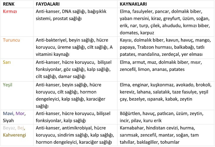 Fitokimyasallar ya da fitoesterler, bitkiler tarafından üretilen kimyasallardır. Bitkilere renk, tat ve koku verirler. Bitkileri pestisit ve çevresel etkenlerden korumakla beraber, her rengin kendine özgü faydaları vardır. Burada önemli olan, besinin tamamını tüketmektir. Gıdanın içerisindeki herhangi bir besin maddesini yüceltmektense, o besinin tamamını tüketmek ve içerisindeki sinerjik faydayı alabilmek çok daha etkilidir. Mevsimine uygun çok çeşitli ve organik gıdalarla beslenmek, yiyecekleri doğa ile aramızdaki enstrümanlar olarak kullanmak, biyolojik ritmimiz için yapabileceğimiz belki de en iyi şeydir.