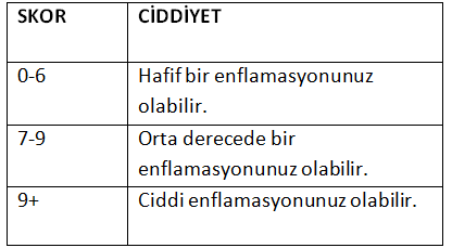 Yaşadığınız her durum için bir (+) ekleyerek vücudunuzdaki enflamasyon şiddetini belirleyin.