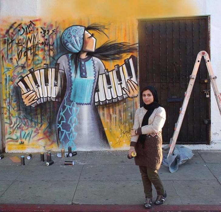 Shamsia Hassani, Kabil Üniversitesi’nde öğretim görevlisi bir ressam, ayrıca Afganistan sokaklarını güzelleştiren bir grafiti sanatçısı. Hassani, Afganistan sokakalarında bombalardan zarar görmüş, terk edilmiş binaların duvarlarını tuval olarak kullanarak, genellikle, geleneksel renkli kıyafetler içindeki neşeli kadınları, müzik aletleriyle tasvir ediyor. Görevinin bir parçasının, savaşın karanlığın ortasındaki şehri, renklerliyle güzelleştirmek olduğunu söylüyor.