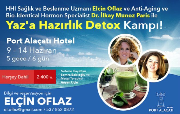 HHI sağlık ve beslenme uzmanı Elçin Oflaz ile anti-aging ve bio-identical hormon uzmanı Dr. İlkay Munoz-Paris, yaza güzel bir başlangıç için 9-14 Haziran tarihleri arasında sizleri Alaçatı Port Otel’de gerçekleşecek detoks kampında dinlenmeye ve zindeleşmeye davet ediyor.