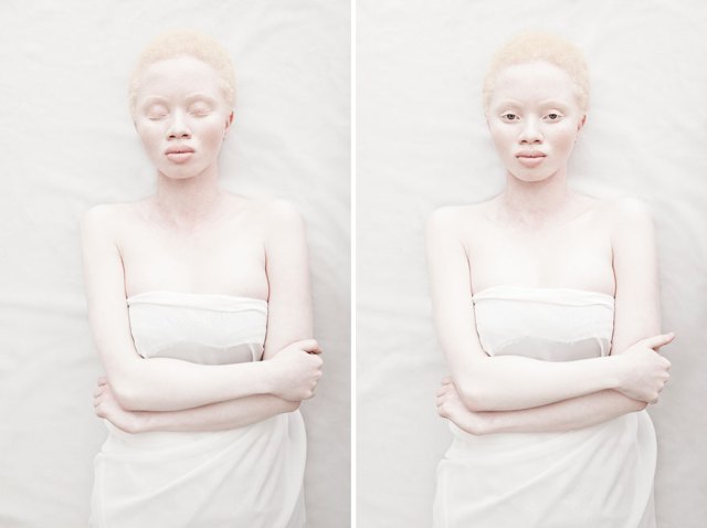 Moskova doğumlu Yulia Taits adlı sanatçı, farklı bir çalışmaya imza atarak albino insanların eşsiz güzelliğini fotoğraflıyor. Şu anda İsrail’de yaşayan sanatçı albinolar hakkında şunları dile getiriyor: Eşsiz güzellikleri beni adeta hipnotize ediyor. Çok saf bir güzelliğe saf güzelliğe sahipler, hatta öyle saf ki, onların hayal dünyasından ya da masallardan geldiğini düşünüyorum.’ Yulia, albinoları fotoğrafladığı çalışmasında hiç photoshop’a başvurmamış; çünkü bu sayede doğal güzelliklerini izleyiciye direkt olarak aktarabileceğine inanıyor. Genellikle beyaz tonlarında çekiliyor ve hiç renklendirme yapılmıyor.