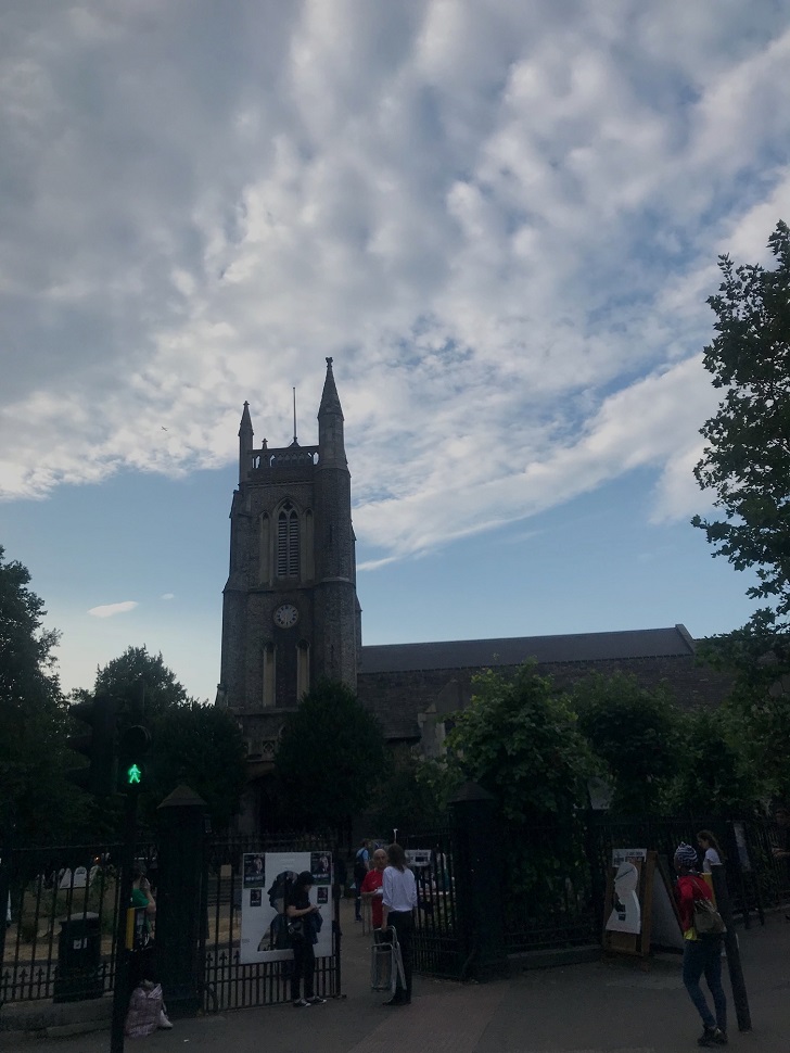 Eşyaları bırakıp kilise turuna çıkmak için merdivenlerin başına gelmiştik ki yağmur başladı. Londra’ya taşındığımızdan beri 2 haftadır yağmayan yağmur önce ince ince yağsa da, sonradan yoğunluğunu artırdı. Görevliler stantları toplamaya başlayınca bir “Dönsek mi?” demedik değil. Ama “Bir daha nerede göreceğiz ki?” hissi ağır bastı ve eşyalarımız ıslanırken biz 119 basamağı tırmandık.