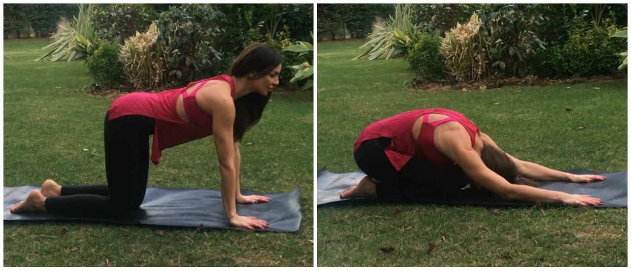 Dört ayak pozisyonuna gelin. Eller omuzların altında, dizler kalçaların altında yerde hizalı ve sırtınız bir masa gibi düz olsun. Nefes alın ve nefes verirken kalçaları topuklara doğru göndererek çocuk pozisyonuna gelin. Çocuk pozisyonunda iken bir nefes alın ve nefes verirken başlangıç pozisyonuna geri dönün. 6 tekrar yapın.