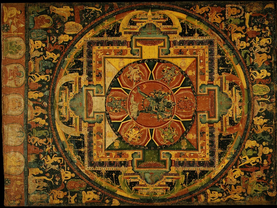 Metropolitan Müzesinde sergilenen eski bir Nepal antik Mandala örneği.