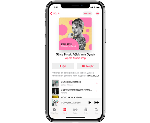 Apple Music Türkiye’nin tanınmış isimleri tarafından hazırlanmış özel listeleri kullanıcılarla buluşturuyor. Sürekli güncellenen listelerle sevilen sanatçıların seçimleriyle buluşmaya devam ederken yeni isimlere de hazır olun!