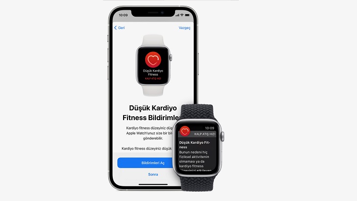 - iOS 14.3 ile gelen yazılım güncellemesindeki YENİ özellik: Apple Watch şimdi geçmişte klinik testler gerektiren düşük aralıklar dahil olmak üzere, daha geniş bir aralıktaki kardiyo fitness düzeylerini ölçebiliyor. Yakında yaşınıza ve cinsiyetinize göre kardiyo fitness düzeyinizi inceleyerek yüksek, ortalamanın üzerinde, ortalamanın altında veya düşük olmak üzere dört aralık kategorisinden hangisine girdiğini öğrenebileceksiniz. Ayrıca kardiyo fitness düzeyiniz düştüğünde gönderilen bildirimler sayesinde her gün biraz daha fazla hareket etme motivasyonuna sahip olabileceksiniz.