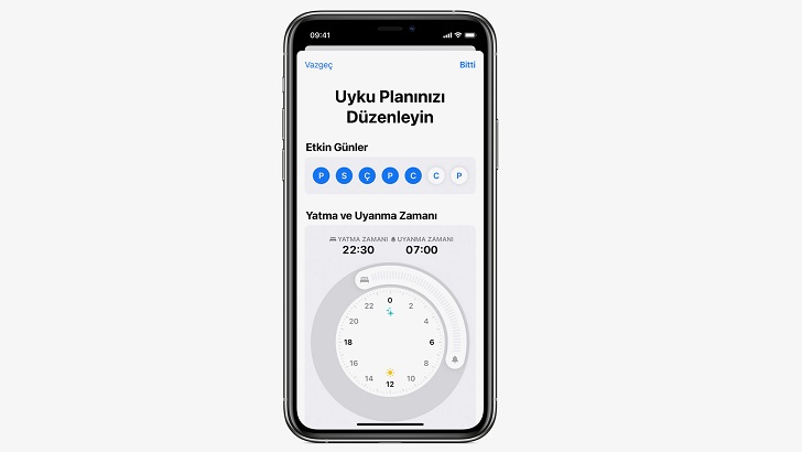 Hepimiz, uykunun sağlığımız için ne kadar önemli olduğunu biliyoruz. Apple Watch ve iPhone şimdi yatma zamanını düzenli bir alışkanlığa dönüştürmenizi sağlayacak yönlendirmelerle uyku hedeflerinize ulaşmanıza yardımcı oluyor. Yeni Rahatlama özelliği, belirli bir saatte yatmadan önce özelleştirilmiş bir rutin oluşturmanıza imkan veriyor. Böylece kolaylıkla gevşemenizi sağlayan bir ses düzenini dinleyebiliyor, favori meditasyon uygulamanızı kullanabiliyor veya günlüğünüzü yazabiliyor ve yatağa zamanında girebiliyorsunuz. Bu özelliği ayarlamak için Sağlık uygulamasının Uyku bölümüne gidin, Uyku’yu Ayarla altında Başlat’a dokuyun ve ekrandaki komutları takip edin.