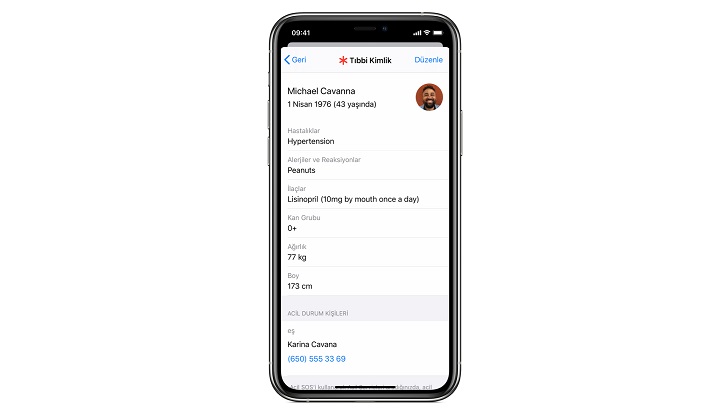 Kolaylıkla oluşturulan Tıbbi Kimlik, ilk müdahale ekiplerinin alerji ve tıbbi durumlar gibi kritik önem taşıyan tıbbi bilgilerinize iPhone’unuzun Kilit ekranından ya da Apple Watch’unuzdan anında erişim sağlamasına imkan vererek acil durumlarda büyük fark yaratabiliyor. Sağlık uygulamasında Tıbbi Kimlik’i nasıl ayarlayacağınızı buradan öğrenebilirsiniz.