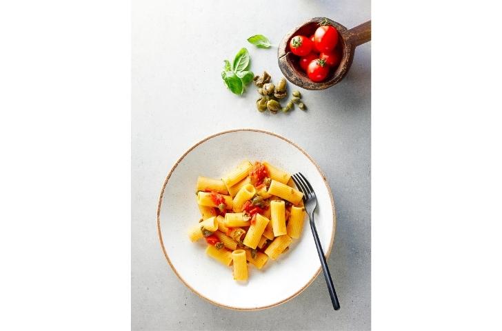 - Karides Suyunda Pişmiş Rigatoni, Vişne Domates, Antakya Kırma Zeytin ve Kapari ile: Makarnalar, zeytinyağında kızarmış karidesten ayıklanan kabuklardan elde edilen suda haşlandı. Aynı zamanda bu tabakta kullanılan vişne domateslerin kabukları kurutularak Levrek Suyu Çorbası’na lezzet kattı.