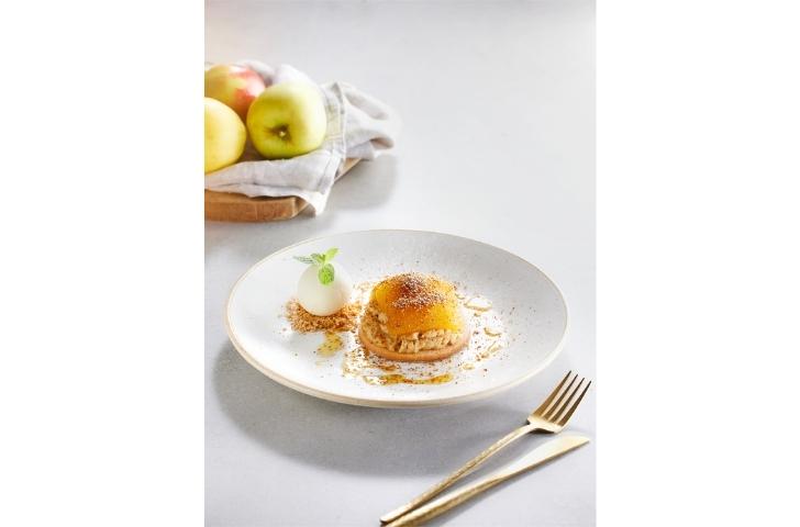 - Karamelize Elmalı ve Baharatlı Ekmek Kremalı Tart: Tiramisu’da kedi dili yerine kullanılan baharatlı ekmeğin kalan kısımları tartın kremasını lezzetlendirmek için kullanıldı. Aynı ekmeğin kalan parçaları kurutularak tatlının üzerine ekmek kıtırı olarak eklendi