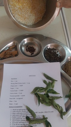 Ben de Hindistan`a gelmeden önce, İstanbul’daki evimde özellikle mevsim dönümlerinde sık yaptığım Ayurvedik tarif Kitchari’yi öğretmeye karar verdim. Ayurvedik doktor ile bir kez daha tarifin üzerinden geçip, düzenlemeler yaptık. Hindistan’da bu sağlıklı tarifi öğretiyorken, Türkiye’de, yılbaşı gecesini envai çeşit meze ve yemeklerle donatılmış sofralarda uzun saatler yemek yiyerek geçirip, yılın ilk gününe ağır ve bitkin uyananlarla da paylaşmak istedim. İşte size ayurvedik, lezzetli ve sağlıklı bir yemek tarifi: Kitchari.