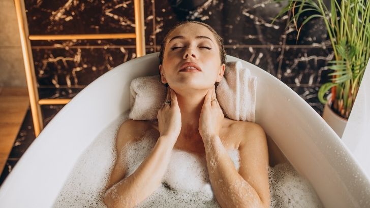 - Stres seviyesini düşürür: Banyo tuzunun içindeki esansiyel yağlar, zihne huzur verip stresi azaltabiliyor. Ayrıca, sıcak su-magnezyum ikilisi de sinir sistemini rahatlatabiliyor.