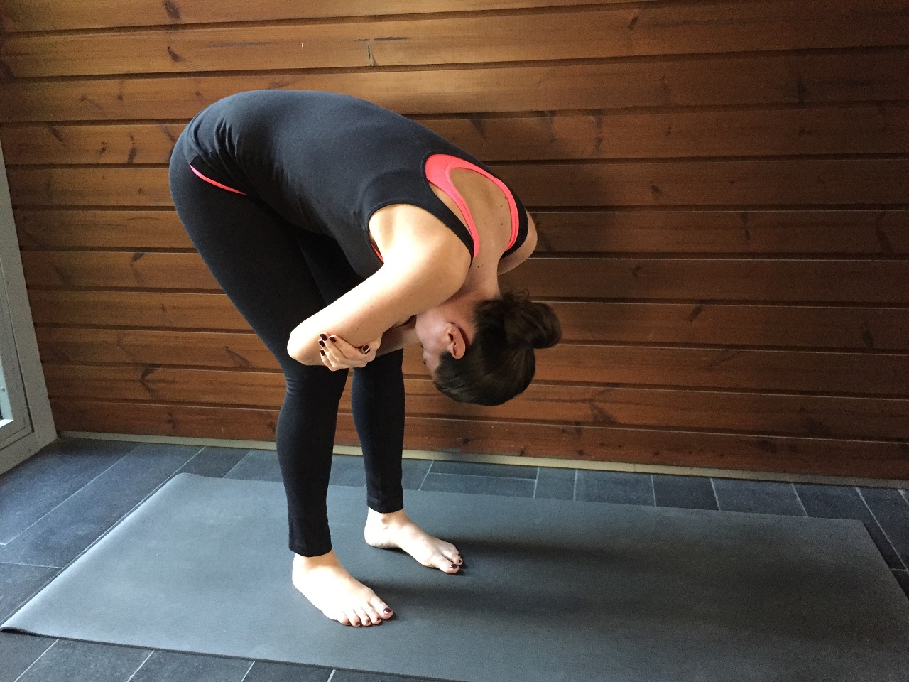 Belimiz için, quadriceps ve hamstring kaslarımız için iyi bir esneme olan dangling pozu kalp atışlarını yavaşlatır ve omurga sinirlerine enerjilendirir. Adet kramplarına son derece iyi gelen bu pozu yüksek tansiyonun var ise yapmamalısınız. Mesane meridyenini yüksek bir şekilde uyarır. Karaciğer, dalak, ve böbrek meridyenlerinin aktive olduğu bir pozdur.