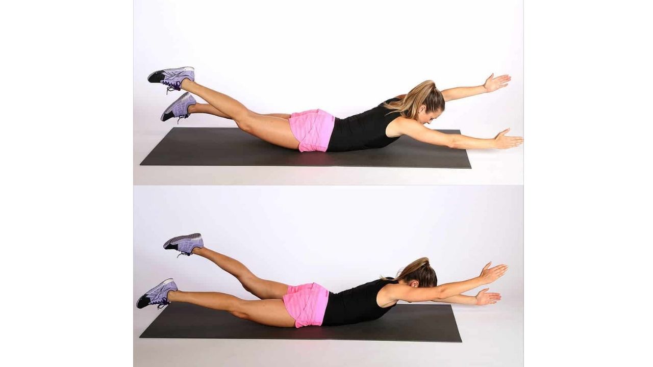 Yere yüzüstü uzanın ve kollarınızı gergin bir şekilde vücudunuzun iki yanına yerleştirin. Ayak parmaklarınızı rahatlatın. Sonrasında sağ kolunuzu ve sol bacağınızı diz ve dirseklerinizi kırmadan havaya kaldırın. 5 tekrardan sonra yönleri değiştirin. Son olarak hareketi 5 kez de her iki kolunuzu ve bacağınızı kaldırarak tekrarlayın.