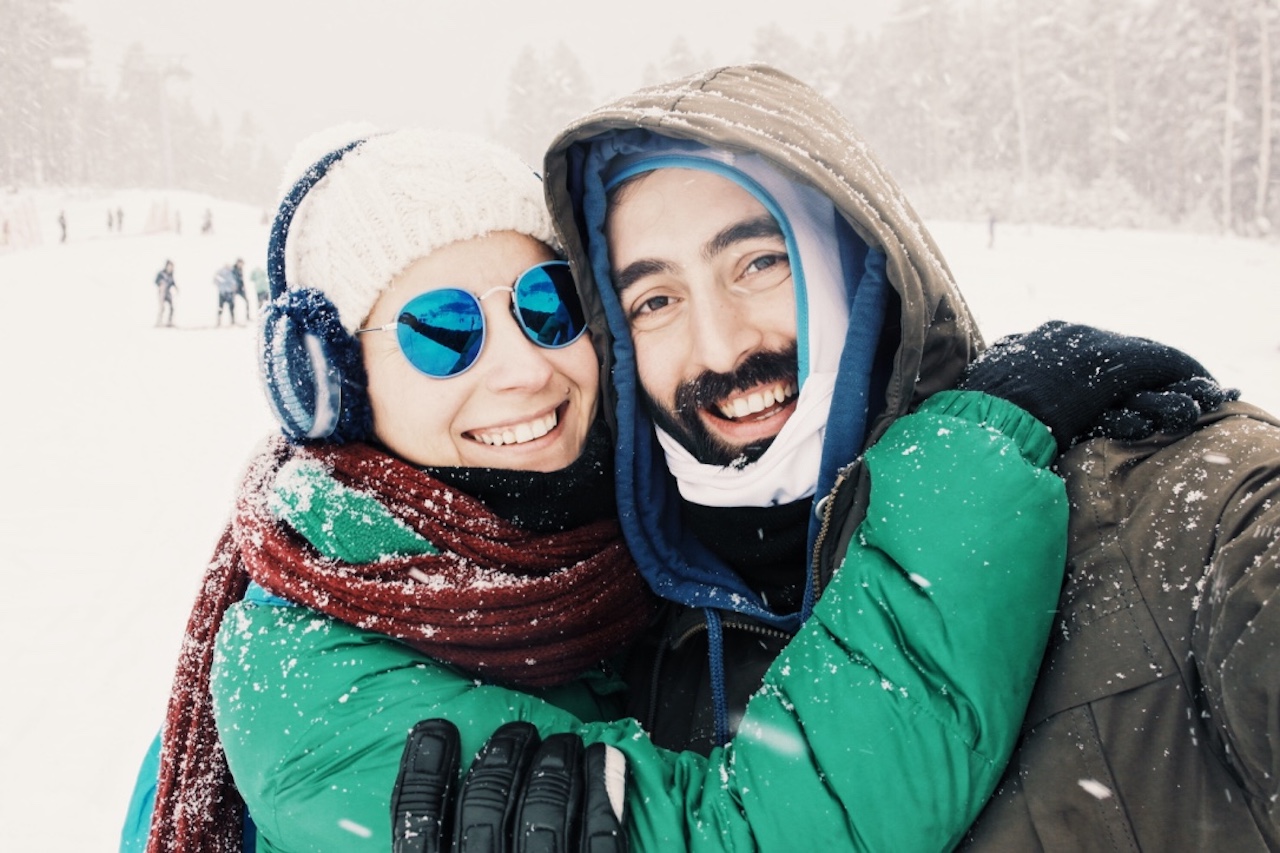 Epey şenlikli etraf. Ve oldukça kalabalık. Bir yanda usta kayakçılar vızır vızır iniyorlar tepeden, bir yanda acemiler ders alıyor. Çok fazla çocuk var, kayan, düşen, koşan, yuvarlanan… Aslında herkes biraz çocuk burada. Otellerin birinden müzik yükseliyor. Tabi yine her yer bembeyaz. Bizi de sarıyor ortam hemen. Koşa koşa en yakın otelin ekipman kiralama yerine gidiyoruz. Dönüş için son minibüs 15:30’da olduğu için kayak dersi almak için pek vaktimiz yok. Biz de kızak kiralayıp, çocukların arasına karışıyoruz.