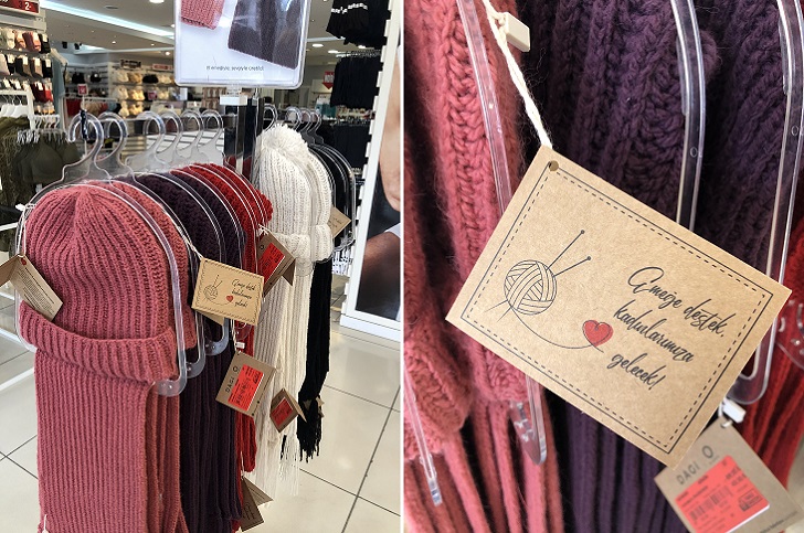 Öte yandan, proje sayesinde hem keyifle örgü örmenin tadını çıkaran, hem de ev ekonomisine katkıda bulunan 80 üretici kadının, el yazısıyla iyi dilek temennilerini yazdığı kartlar da ürünlerle birlikte veriliyor.