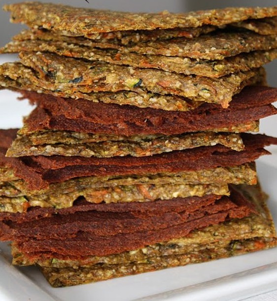 Tohumlar dışında bütün malzemeleri mutfak robotundan geçirin. Keten tohumları 2 saat suda kaldıktan sonra jöle kıvamı alacaktır. Bu jeli bir süzgeç yardımıyla süzüp içebilirsiniz, harika bir probiyotiktir. Süzdüğünüz tohumları, robotta yaptığınız karışımla bir kapta elle karıştırın. Ardından bir spatula yardımıyla yağlı kağıt üstüne bu karışımı dikdörtgen şeklinde yayın. Tamamen kıtırlaşıncaya kadar 50 derecede 8 saat kurutun*. Kapalı bir kapta muhafaza edin. Tarifimiz 1 aya kadar dayanabilir.