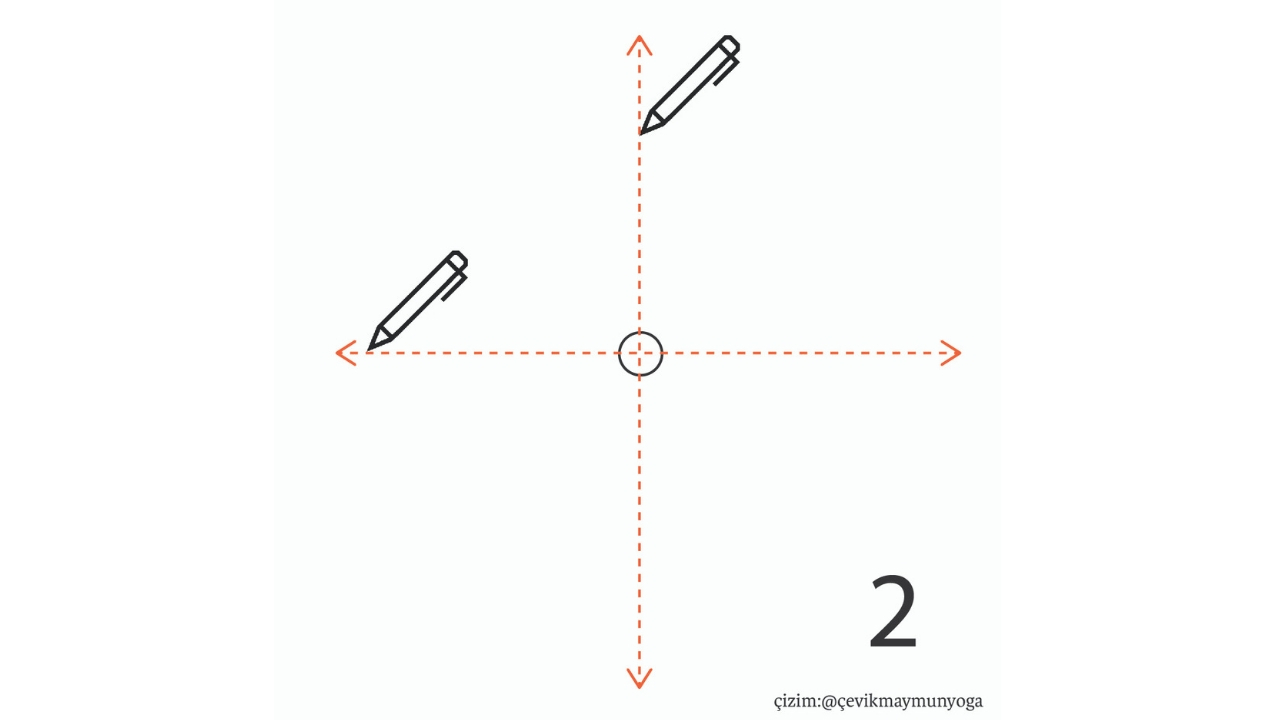 2- Merkezdeki nokta/dairenin merkezinden düşey ve yatay iki çizgi atın.