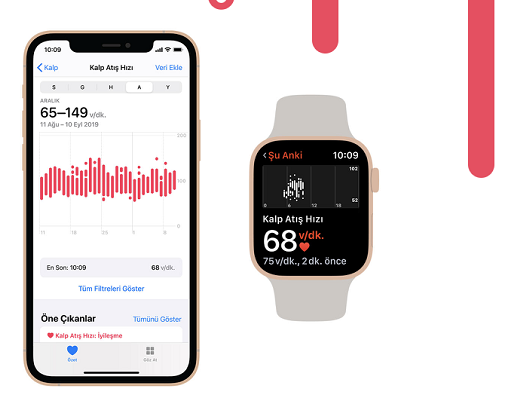 iPhone’da kalp sağlığı bildirimlerini açarsanız kalp atış hızınız fazla yüksek veya düşük olduğunda Apple Watch bunu size bildirir. iPhone’unuzdaki Sağlık uygulamasını açarak zaman içindeki kalp atış hızı verilerinize ilişkin şemaları ve grafikleri görebilirsiniz.