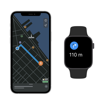 Hiç bilmediğiniz bir yere doğru mu gidiyorsunuz? iPhone’da bir yol tarifi açtığınızda, kolayca bakmanız için aynısı Apple Watch’unuzda da görüntülenir. Yön değiştirmeniz gerektiğinde hafif bir dokunuş bile hissedersiniz. Böylece kalabalık bir sokakta yürürken, yeni bir rotada bisiklete binerken veya sadece manzaranın tadını çıkarmak istediğinizde ekranınıza bakmanız gerekmez.