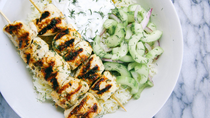 - Tüm malzemeleriniz hazır, sıra bowlu oluşturmakta: Önce kasenin dibine birkaç kaşık pirinç koyun. Pirincin üstüne salatayı, cacığı ve tavuk parçalarını, her biri ayrı bir köşeye dağılacak şekilde yerleştirin. Afiyet olsun!