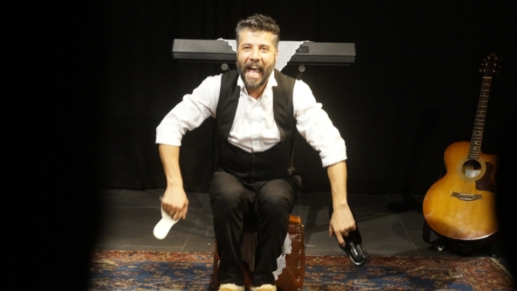 Aslında hayır. Çünkü başlangıçta ben bu oyunu iki kişi için yazmıştım ve hatta oyuncuyu da buldum, ilk provaya da girdik birlikte (isim vermeyeceğim). Çünkü ben normalde tek kişilik oyuna çok sıcak bakmayan bir tiyatrocuyum ve kafamda iki kişiye dair diyaloglar vardı. Ancak, diğer oyuncu ile ilk provanın ardından, o gece sabaha dek çalışıp, oyunu tek kişilik bir oyuna dönüştürdüm. Sonra da tek kişilik oyunu hem yazıp, hem oynayıp, hem de yönetemeyeceğimi anladım tabii. (Gülüyor.) Tam burada da devreye Bülent Çolak girmiş oldu, benim çok eski arkadaşım ve mizah kafamız çok benzer onunla.
