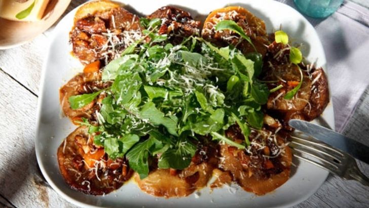 8.Tabağa aldıktan sonra parmesan ve muskat ekleyip 2 yemek kaşığı zeytinyağını üzerinde gezdirin.