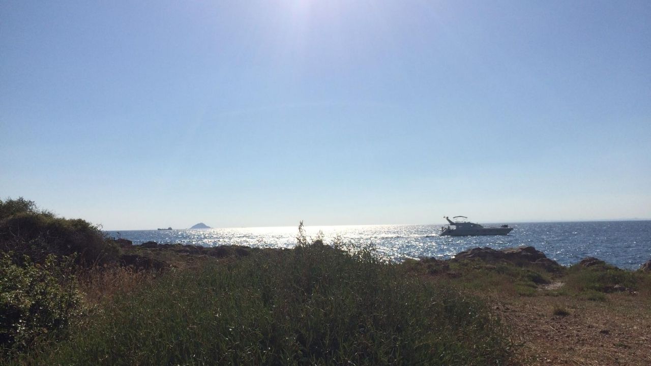 Kısa bir yürüyüşten sonra Madam Marta’dayız. Denize girilen kısmı geçiyoruz. Sonrasında birkaç ağaç altı görüyoruz, hepsi dolu. Buraları da geçince, koyun sonundaki kamp alanına geliyoruz. Bir iki tane çadır var sadece. Kendimize bir yer bulup oturuyoruz. Tamamen güneş altındayız ama güzel esiyor. Bir amca geliyor, bizi görünce duruyor.