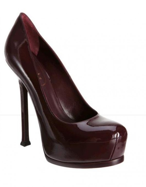 Yves Saint Lauren Platform topuklar. Bir kadının dolabında olmazsa olmazı sivri topuklar, bordo ile nasıl seksi hale bürünür? İşte böyle.