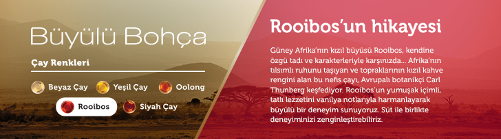 Güney Afrika’nın kızıl büyüsü Rooibos’un, vanilya ile nefis buluşması. Çayda yumuşak içimli ve tatlı lezzetleri sevenlerin favorisi.