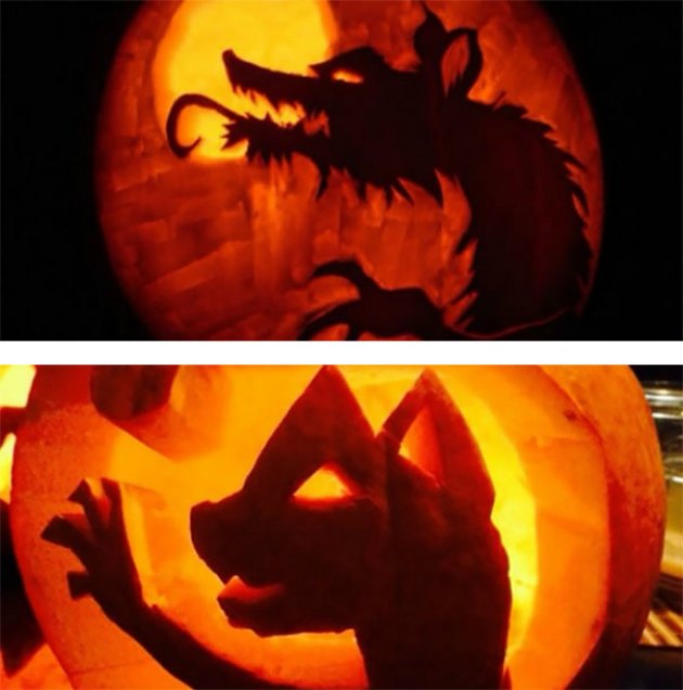 3. Kurt adam deseni oyulmuş bal kabağı