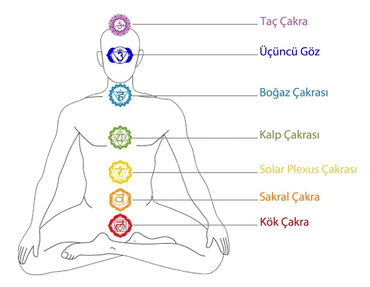 Bedenimizde bulunan tüm organlar, dokular ve sistemler benzer titreşimli atomlardan oluşur. Bedenimizin belirli bölgelerinde bu enerji alanları belirgindir, bunlara çakra denir. Omurganın kökünden yukarı doğru yükselen 7 ana çakra kabul edilir.