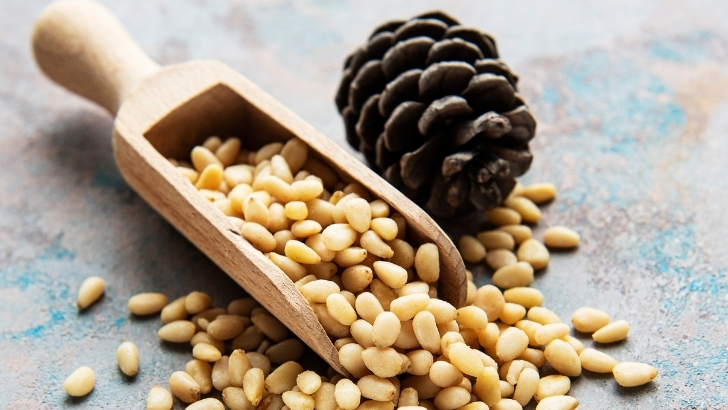 Çam fıstığı fıstık çamının kozalaklarından elde edilir. Bu tatlı ve damla şekilli yemişler hem tatlı hem de tuzlu pek çok tarife eklenebilirler. Besin profili içerisinde proteinler, lifler, doymamış yağ asitleri ve E vitamini, K vitamini, bakır, demir, magnezyum ve manganez gibi pek çok başka besin bulunur.